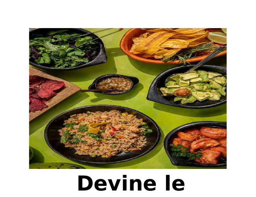 Il s'agit d'une présentation avec des photos de plats et les élèves doivent le nommer.