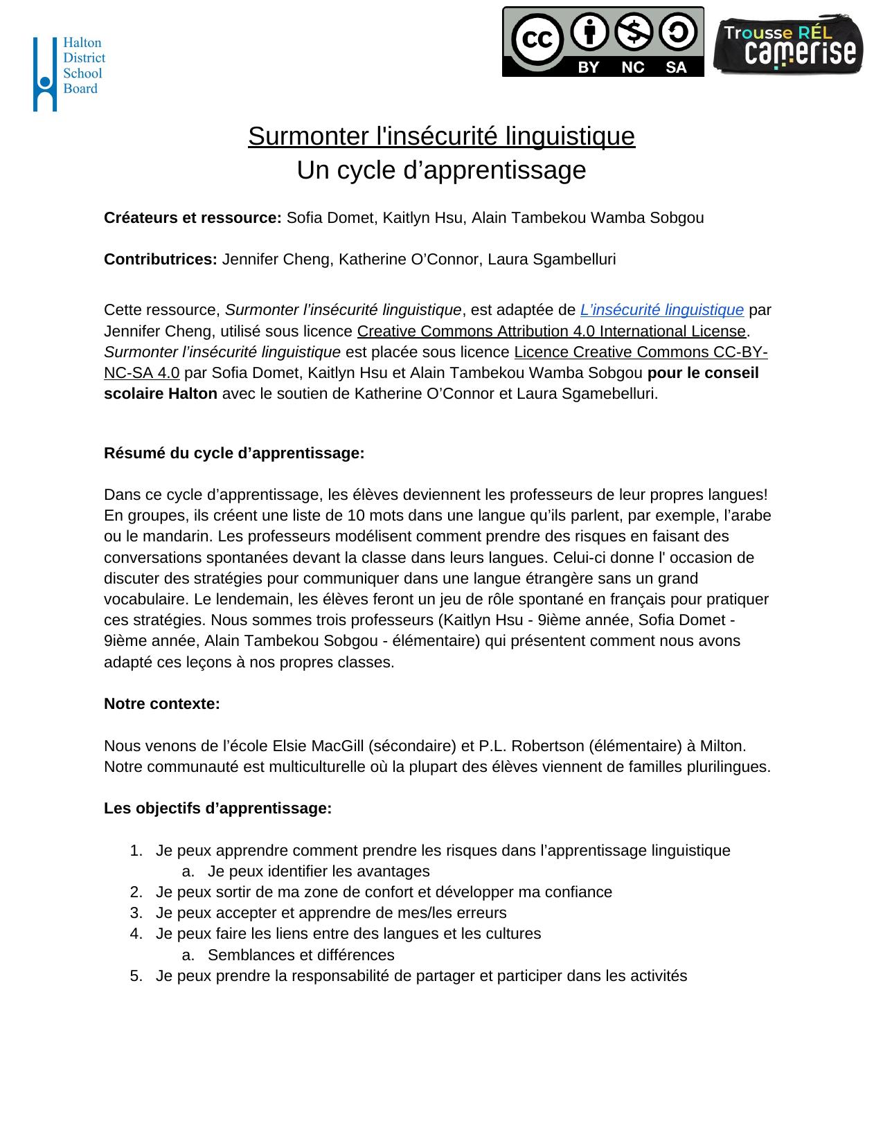 Cycle d’apprentissage en FLS visant à aider les élèves à surmonter l’insécurité linguistique. Les élèves deviennent « professeurs » de leurs langues en créant des listes de 10 mots, puis pratiquent des stratégies de communication (gestes, périphrases, mots amis, etc.) à travers des jeux de rôle spontanés et des réflexions, avec des adaptations pour l’élémentaire et le secondaire.